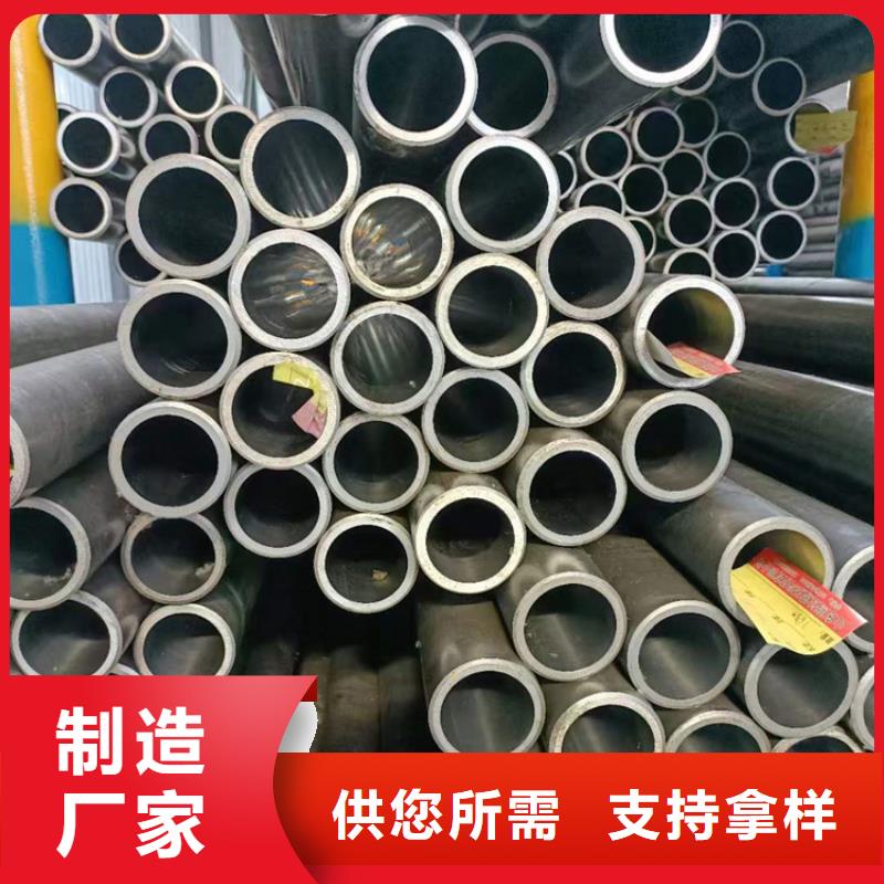 因为精密钢管內外壁无空气氧化层、承担髙压无渗漏、高精密、高光滑度、冷拔不形变、扩口、挤扁无缝隙等优势,因此关键用于制造气动式或液压件的商品,如汽缸或液压缸,全是用无缝钢管。精密钢管的成分有碳C、硅Si、锰Mn、硫S、磷P、铬Cr。绗磨管采用加工工艺油缸管采用滚压加工,由于表面层留有表面残余压应力,有助于表面微小裂纹的封闭,阻碍侵蚀作用的扩展。从而提高表面抗腐蚀能力,并能延缓疲劳裂纹的产生或扩大,因而提高绗磨管疲劳强度。通过滚压成型,滚压表面形成一层冷作硬化层,减少了磨削副接触表面的弹性和塑性变形,从而提高了绗磨管内壁的耐磨性,同时避免了因磨削引起的烧伤。滚压后,表面粗糙度值的减小,可提高配合性质。